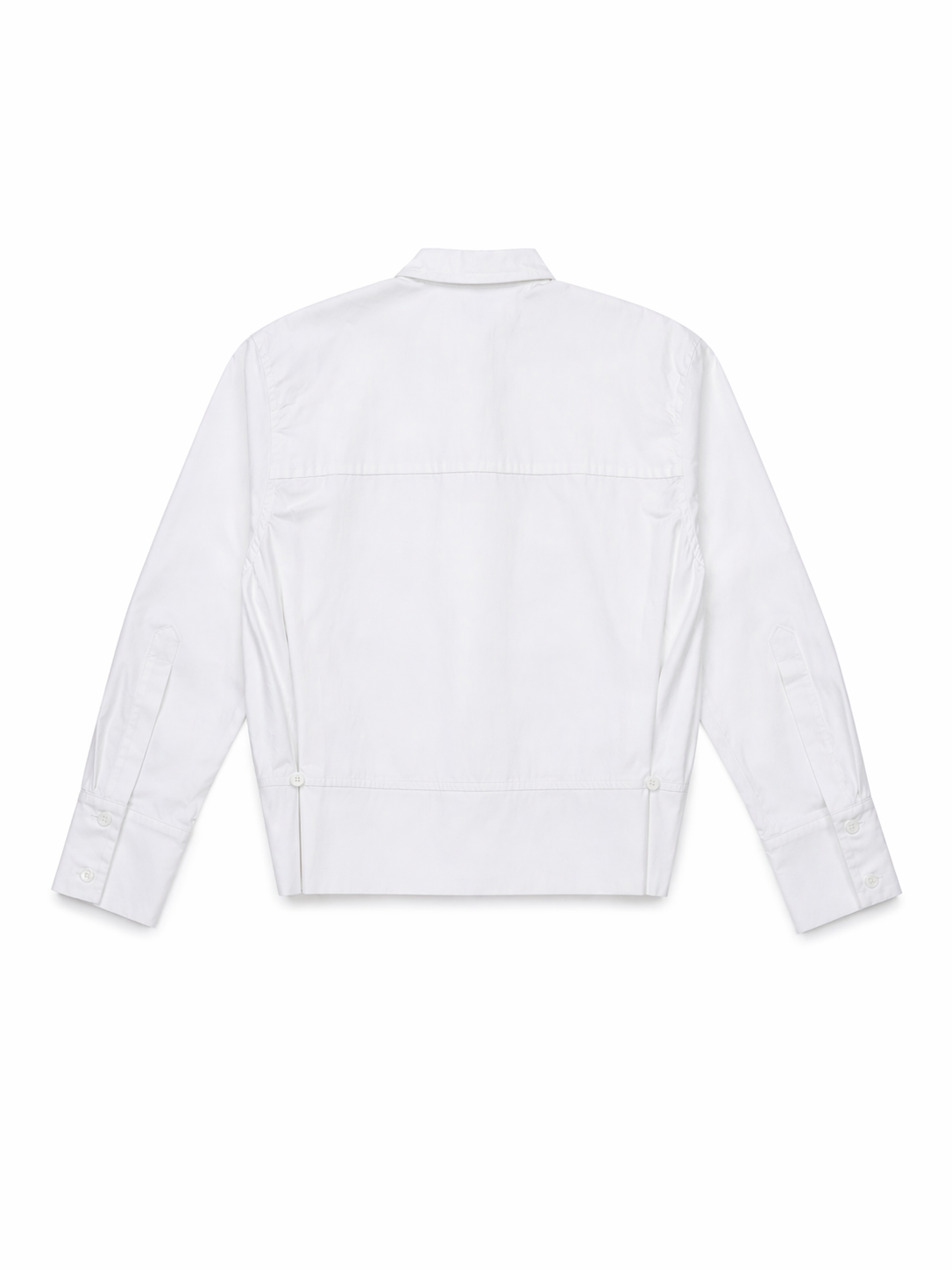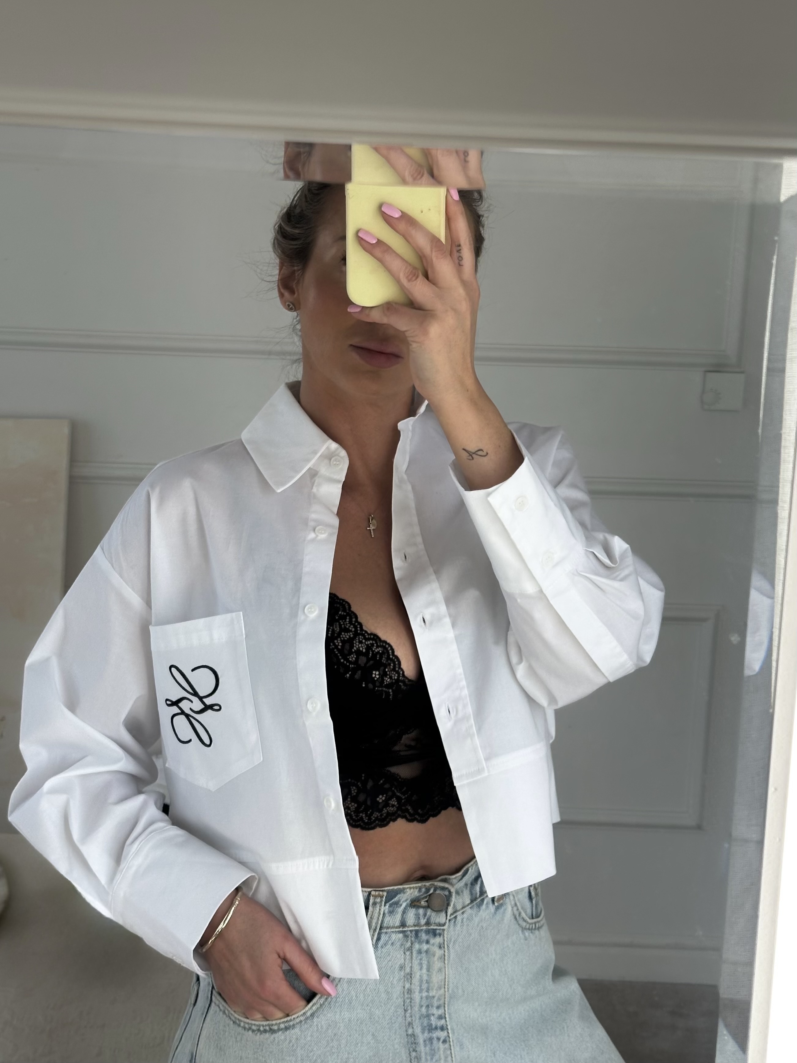 Koszula BUBBLE z usztywnianym kołnierzem, zapiana na guziki. Fason pudełkowy, dodatkowo z tyłu zapinana za guziczki co daje efekt tzw. bomberki.