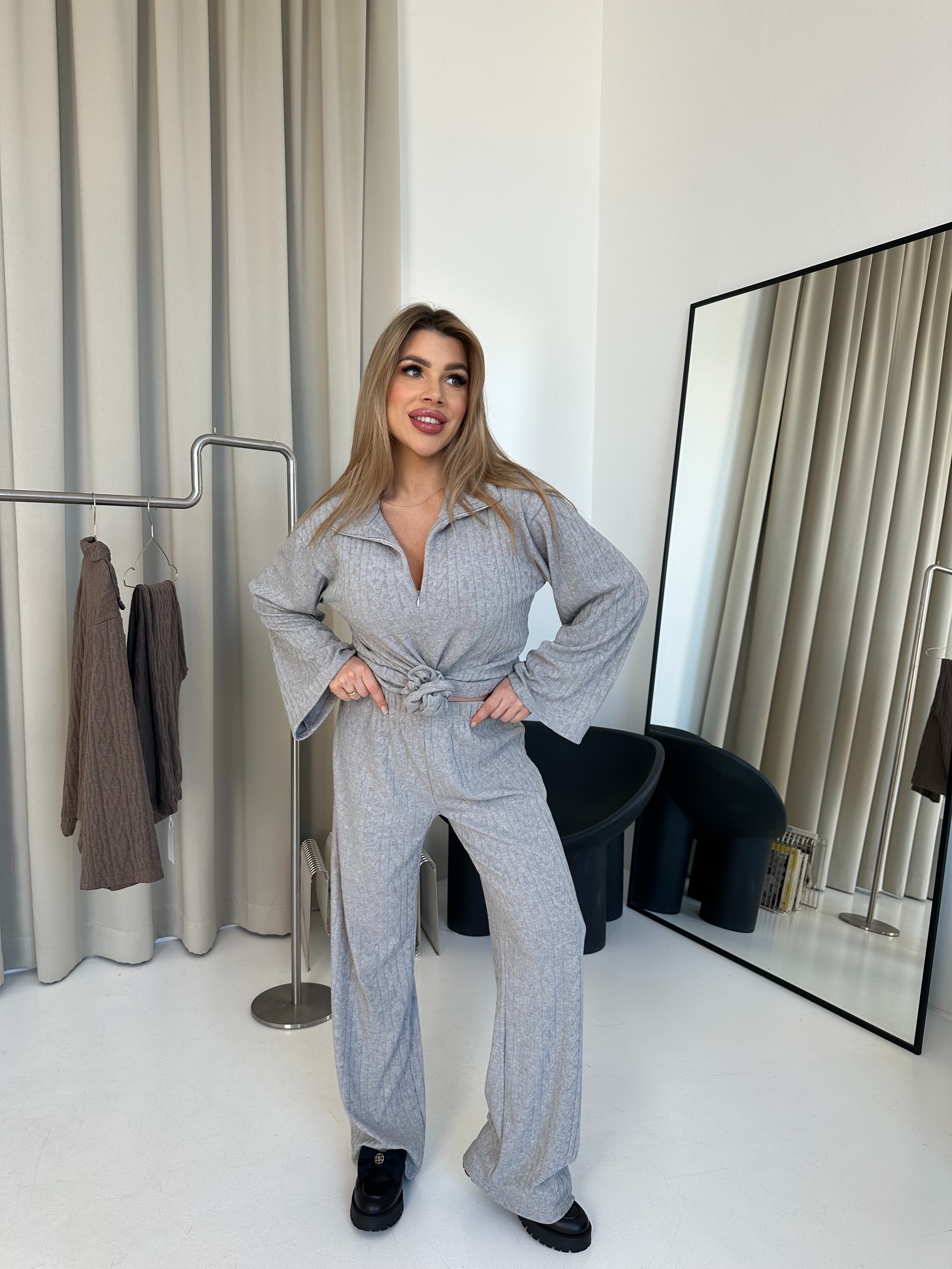 Dzianinowe spodnie STOCKHOLM z szerokimi nogawkami wykonane z miękkiego, elastycznego materiału z wzorem przypominającym warkocz. Cechują się wygodnym krojem i elastyczną gumką w pasie co zapewnia komfort noszenia przez cały dzień. Idealny komplet tworzy ze swetrem STOCKHOLM.